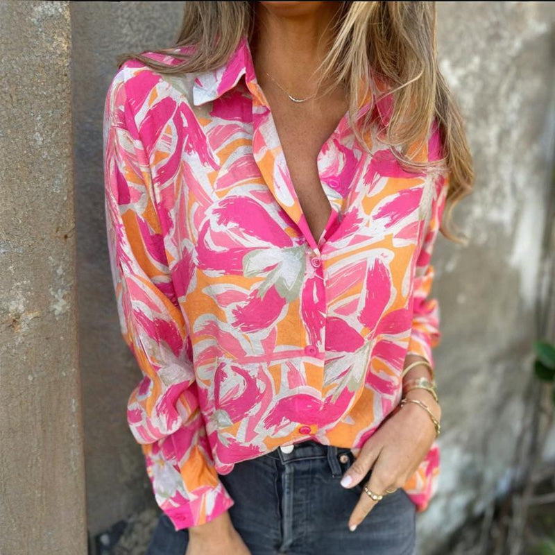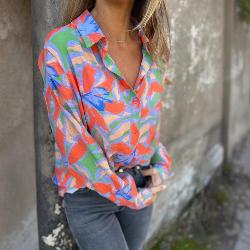 🌈Artistiek bloemenhemd - Klassieke kraag en losse pasvorm
